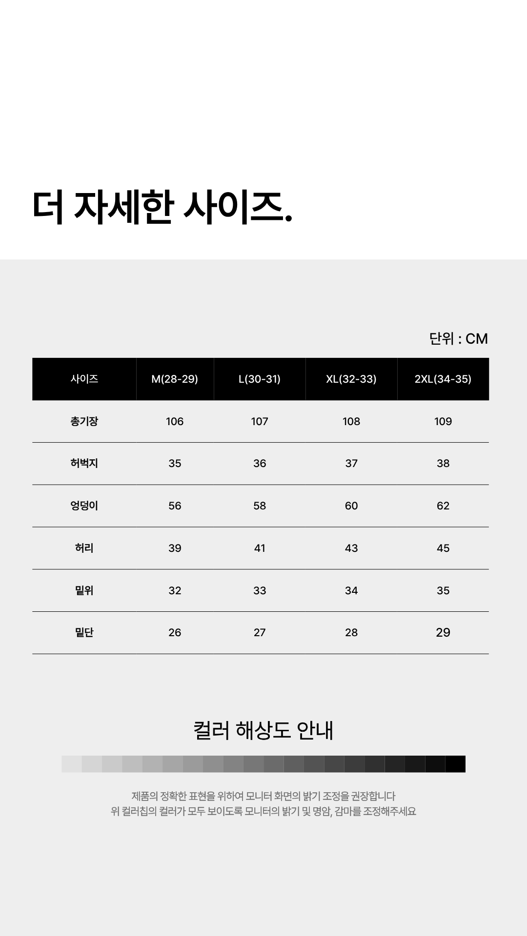 - 모델 2 : 180cm, 86kg / 근육 하체형 / XL (32-33) 착용