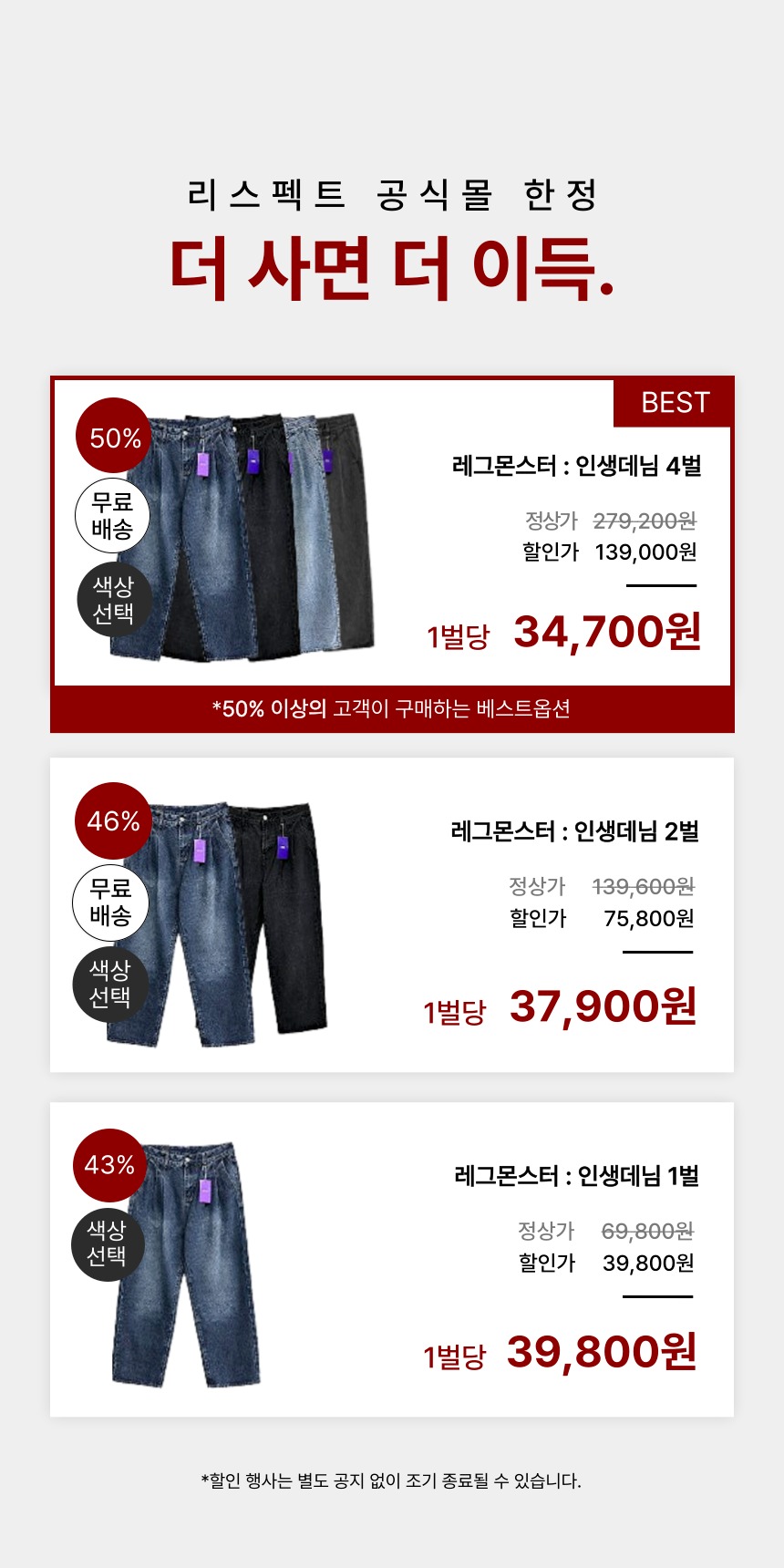 [허벅돼·하체비만 보완] 레그몬스터 : 인생데님