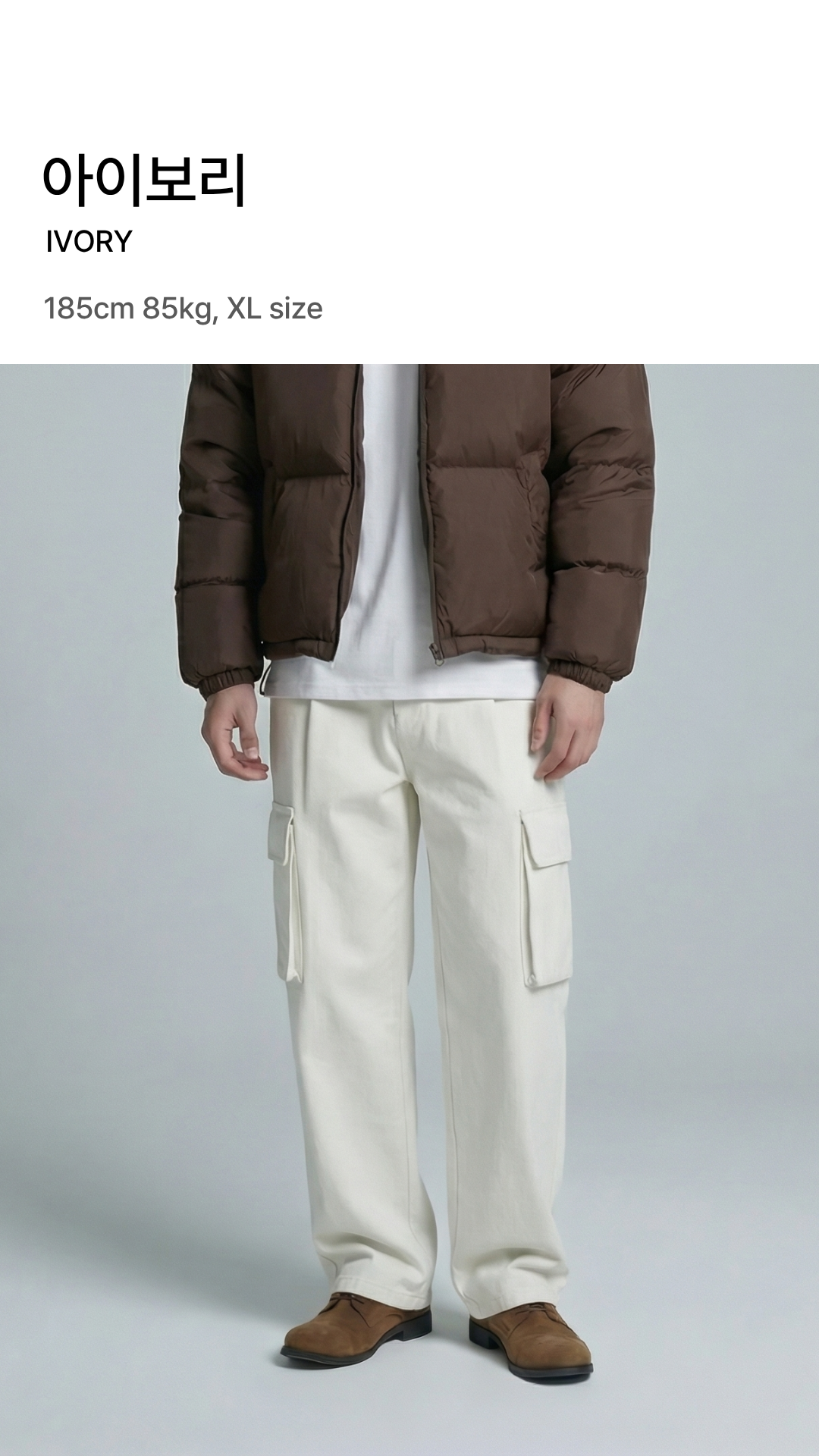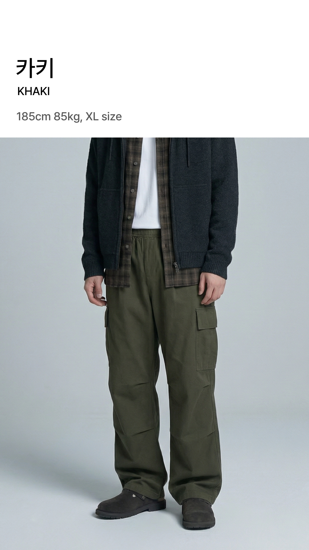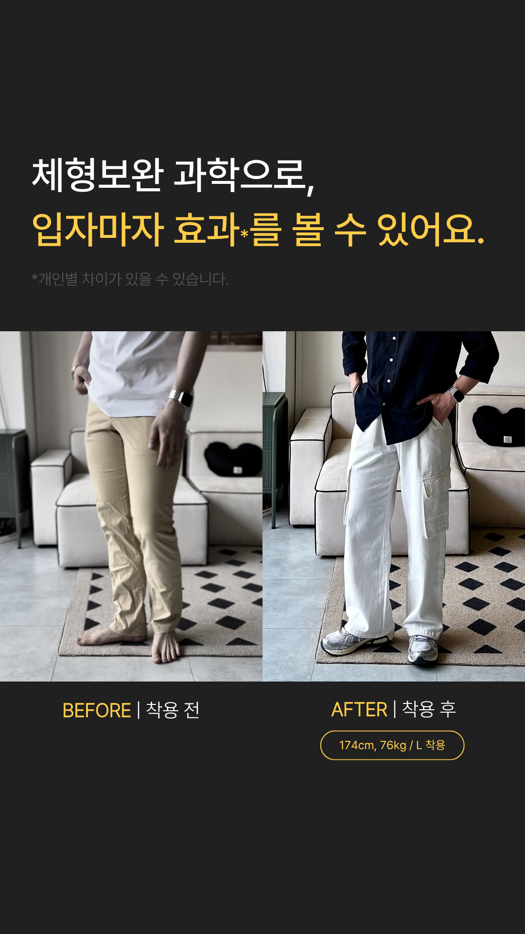 - 모델 1 : 174cm, 76kg / 하체비만형 / L(32-33) 착용