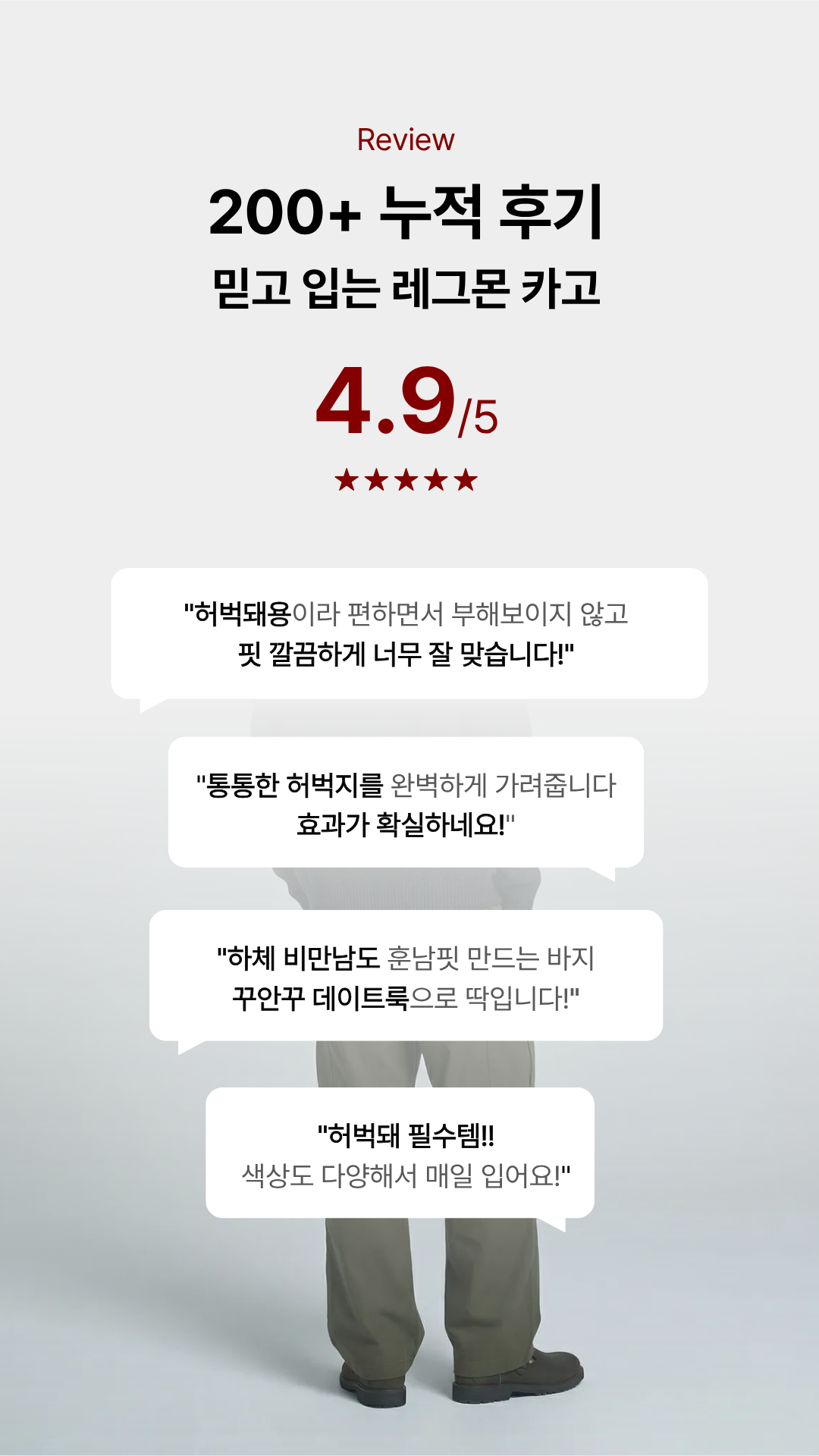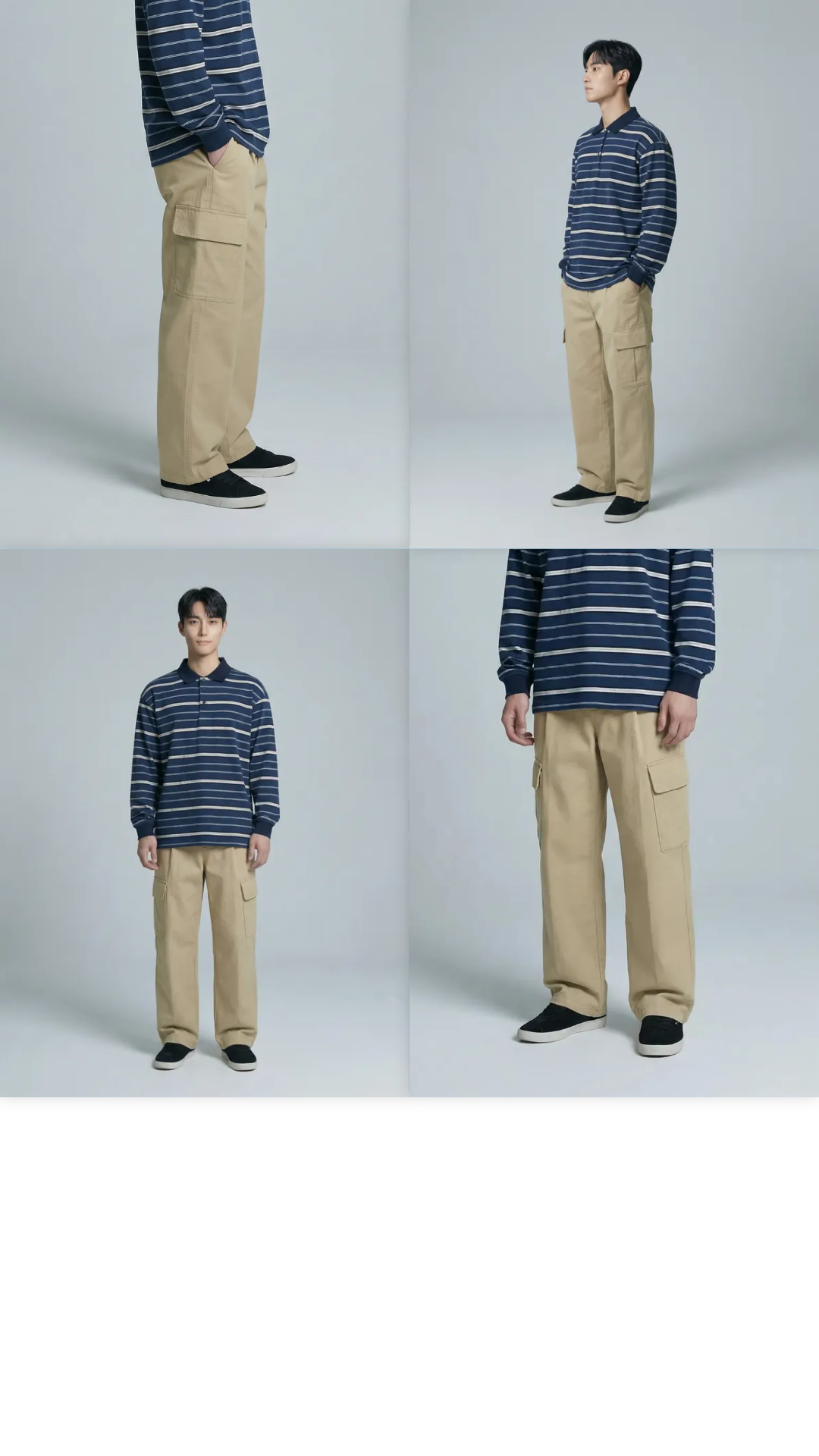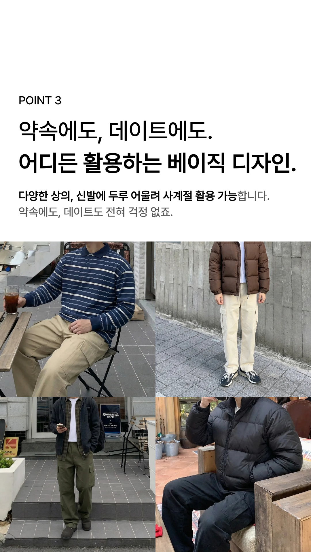 - 모델 1 : 174cm, 76kg / 하체비만형 / L(32-33) 착용